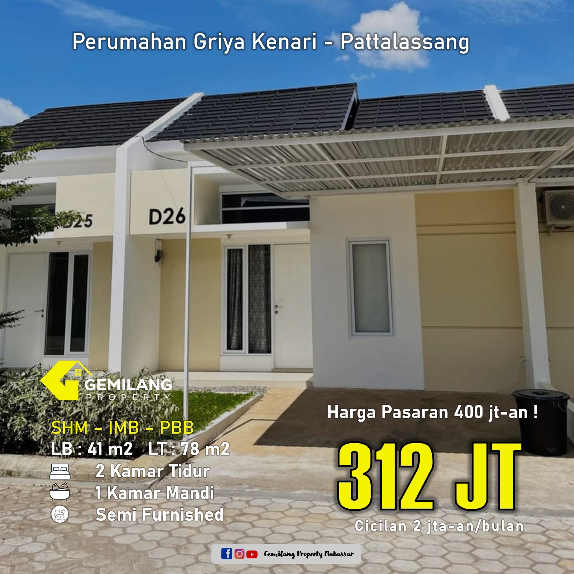 Griya Kenari Pattalassang menawarkan hunian nyaman dan modern dengan lingkungan yang asri dan aman. Dirancang untuk menunjang gaya hidup keluarga masa kini, setiap unit memiliki desain elegan, pencahayaan alami, serta sirkulasi udara yang baik. Fasilitas umum seperti taman, tempat ibadah, dan area bermain anak turut melengkapi kenyamanan Anda. Lokasinya strategis, dekat dengan pusat kota, sekolah, dan akses transportasi utama. Hunian ideal untuk masa depan.