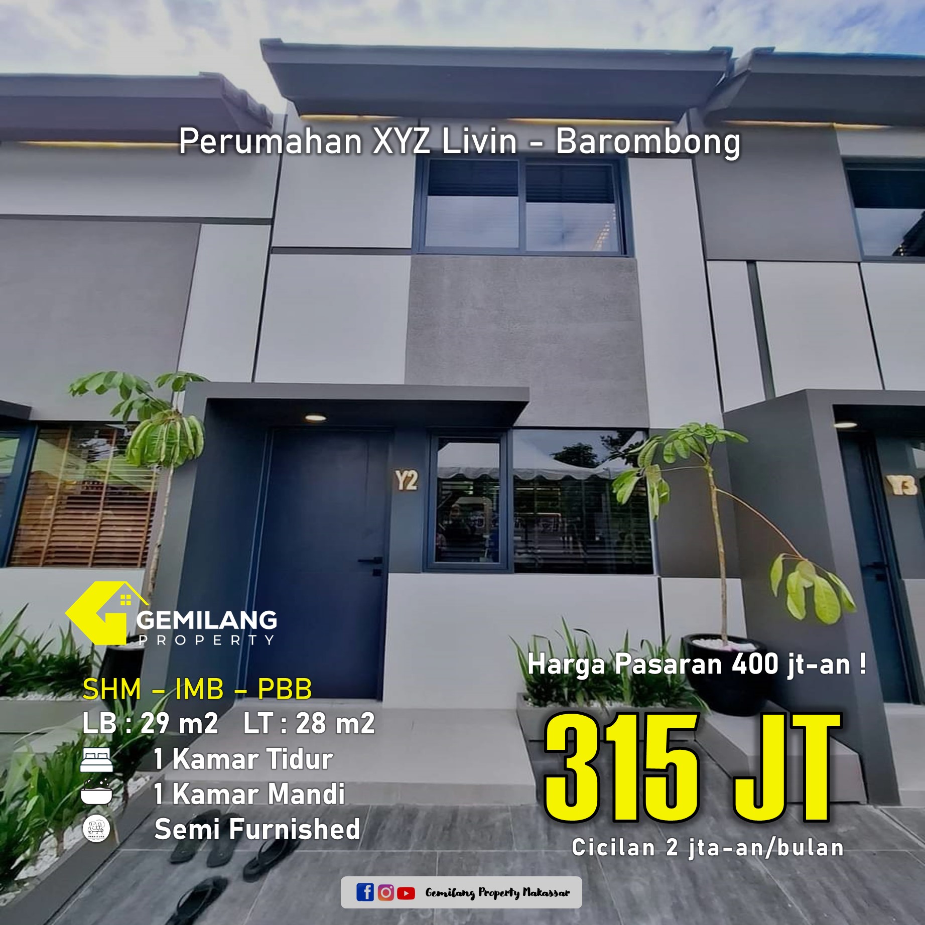 XYZ menawarkan hunian nyaman dan modern dengan lingkungan yang asri dan aman. Dirancang untuk menunjang gaya hidup keluarga masa kini, setiap unit memiliki desain elegan, pencahayaan alami, serta sirkulasi udara yang baik. Fasilitas umum seperti taman, tempat ibadah, dan area bermain anak turut melengkapi kenyamanan Anda. Lokasinya strategis, dekat dengan pusat kota, sekolah, dan akses transportasi utama. Hunian ideal untuk masa depan.